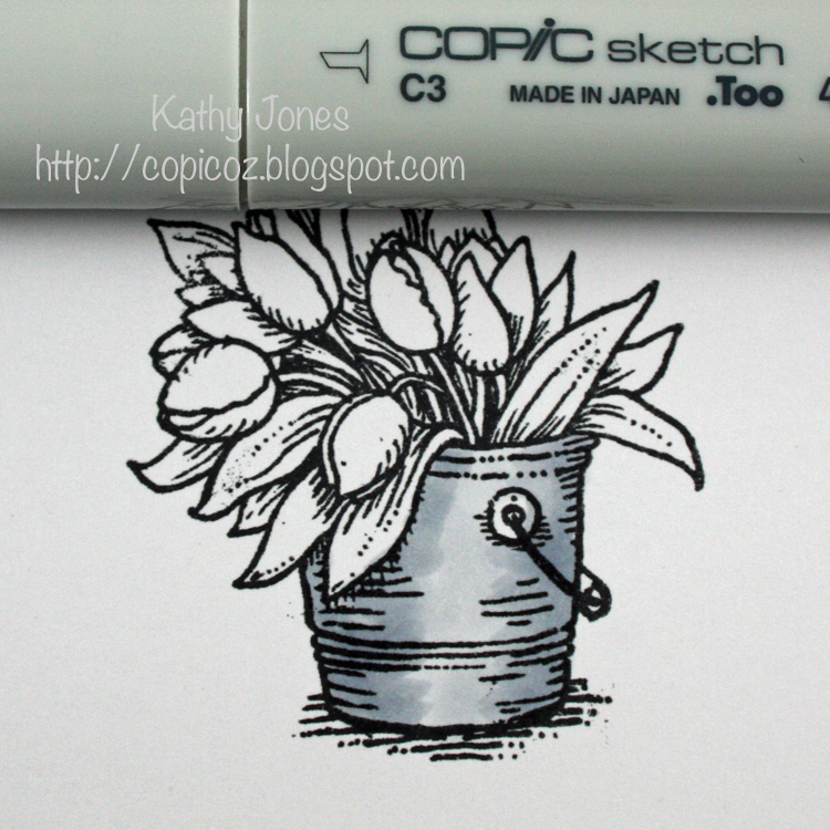 Hello Everyone and welcome to another Copic Oz Tutorial. Today I'm showing you how I colour a metal bucket using the sweet tulip image from Flourishes' April Showers stamp set.